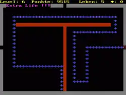 The first known home computer version, Worm, was programmed by Peter Trefonas for the TRS-80 and published by CLOAD magazine in 1978.[2] Versions followed from the same author for the PET and Apple II. An authorized version of the Hustle arcade game, itself a clone of Blockcade, was published by Milton Bradley for the TI-99/4A in 1980.[8]