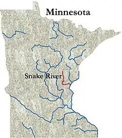 The Snake River is a 104-mile-long (167 km)[1] tributary of the St. Croix River in east-central Minnesota in the United States. It is one of three streams in Minnesota with this name.[2] Its name is a translation from the Ojibwa Ginebigo-ziibi, after the Dakota peoples who made their homes along this river. Kanabec County's name is derived from the Ojibwe word for this river.[3]