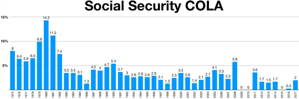 • 1975 Automatic cost of living adjustments (COLAs) mandated