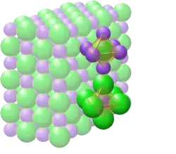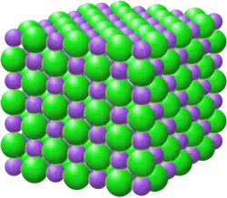 ![]() Crystal structure with sodium in purple and chloride in green[1]