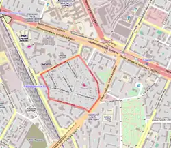 Sokol (Russian: Сокол) also known as "artists' settlement" (Russian: посёлок художников)) is the first cooperative residential settlement in Moscow,[1] founded in 1923. It is located in the Northern Administrative Okrug, not far from the later built Sokol metro station. The settlement "Sokol" became one of the embodiments of the garden city concept. Since 1979, the settlement has been under state protection as a monument to urban development of the first years of Soviet power. Since 1989, the settlement "Sokol" has been self-governing. The architects of the settlement "Sokol" implemented the concept of the "garden city",[1] which was popular in the early 20th century. The idea of a settlement that would combine the best features of the city and the village was put forward by the British Ebenezer Howard in 1898. As early as 1903, a project appeared to build a similar garden city on Khodynka Field in Moscow. This project was being developed for some time, but the events of 1914-1917 prevented its implementation.[2] The urban development plans of the 1920s - "New Moscow" by Alexey Shchusev and "Greater Moscow" by Sergei Shestako - also widely used the idea of a "garden city". The outskirts and suburbs of Moscow were supposed to be built up with settlements consisting of low-rise buildings, which were to have their own libraries, clubs, sports and children's playgrounds and kindergartens.[3]