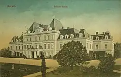After the discovery of black coal in Karviná in 1776, many miners and workers came and settled there. The village developed quickly since then. In 1873 a château was built there by the Larisch family. In the surrounding park, the family chapel and tomb were built. In 1894-1897 a Neo-Renaissance Saint Henry church was constructed. The Viennese architect Cerny, inspired by the Basilica of Santa Croce in Florence, planned the church for the growing community and the new building was able to house 4,000 worshippers.[6]