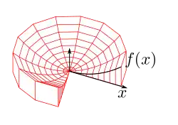 This can also be derived from multivariable integration. If a plane curve is given by then its corresponding surface of revolution when revolved around the x-axis has Cartesian coordinates given by with . Then the surface area is given by the surface integral