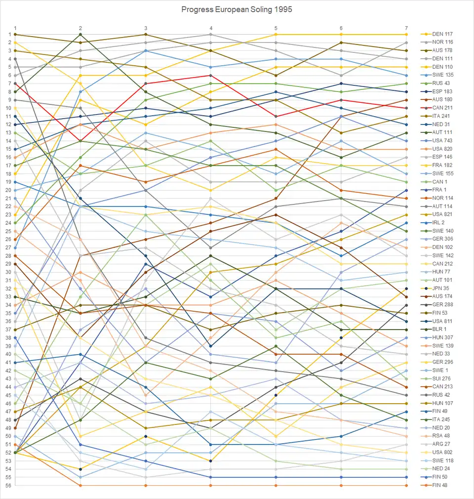 - ^ "Soling European Championship" (ASCII). site-isaf.soticcloud.net. World Sailing. 12–18 June 1995 [1995]. Retrieved 26 January 2022.
