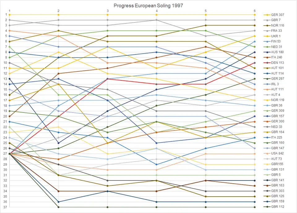 - ^ "Soling European Championship" (ASCII). site-isaf.soticcloud.net. World Sailing. 6–12 September 1997 [1997]. Retrieved 27 January 2022.