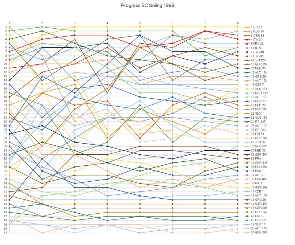 - ^ Walker, Stuart H., ed. (4–11 June 1998) [1998]. "Pichugin wins the 1998 European Championship in Slovenia" (PDF). soling.com. International Soling Association. Retrieved 29 January 2022.