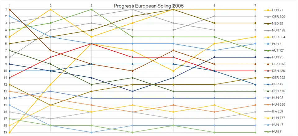 - ^ "Soling European Championship" (ASCII). site-isaf.soticcloud.net. World Sailing. 7–12 August 2005 [2005]. Retrieved 26 January 2022.