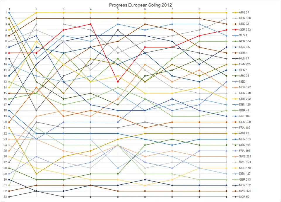 - ^ a b "Soling European Championship" (ASCII). site-isaf.soticcloud.net. World Sailing. 9–15 June 2012 [2012]. Retrieved 18 February 2022.
