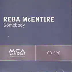 "Somebody" is a country music song written by Dave Berg, Sam Tate, and Annie Tate. The song was originally recorded by American country music artist Mark Wills for his fourth studio album Loving Every Minute (2001). The song was later recorded by Reba McEntire as the second single from her 25th studio album Room to Breathe (2003) on December 22, 2003. The song was released rather quickly due to the underperformance of the album's lead single "I'm Gonna Take That Mountain", which had only reached number 14 on the country charts.