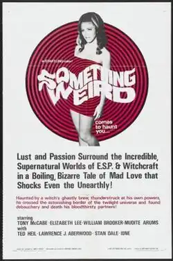 Something Weird is a 1967 American exploitation film directed by Herschell Gordon Lewis. It stars, among others, Tony McCabe and Elizabeth Lee and features a paranormal plot involving LSD drug use, a psychic, a hideous witch who morphs into a young woman, a séance, a kung-fu chopping socialite, ghosts, psychopaths and federal agents.