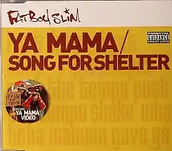 "Song for Shelter"/"Ya Mama" is a song by British big beat musician Fatboy Slim, released as a double A-side single in September 2001. Both songs are on his 2000 album Halfway Between the Gutter and the Stars. "Ya Mama" is on the Charlie's Angels soundtrack and film and in a trailer for Spy Kids. The single peaked at No. 30 on the UK singles chart. Both songs were omitted from his 2006 greatest hits compilation Why Try Harder.