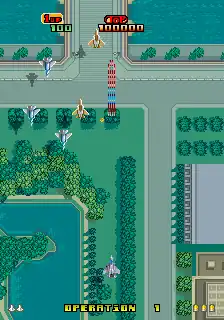 As with most scrolling shooters, the player pilots an airplane fighter, armed with a single gun, which can be powered up by collecting power ups dropped by certain colored enemies. The power ups can add a ship to the fighter's left and right sides and increase shot power and range. They can also drop bombs, which can wipe out all weak enemies on screen and do massive damage to stronger enemies.