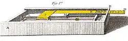 - When one wishes to tune an instrument, one pulls toward oneself the [little board] of the note one wishes to produce, so that the raised bridge is under the string. And to ensure that the string will touch the bridge firmly, one places over it a piece in the form of a right angle square [équerre]. For example, if one wants a do, one pulls board LI and the bridge affixed to it (MN); and one puts the square behind the bridge, then plucks the string with the jack.