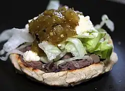 | Main ingredients | corn dough, vegetables, meat, refried beans, cheese, lettuce, onions, red or green sauce (salsa) |