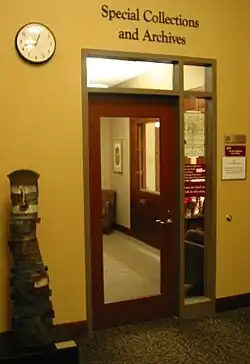When Furman University moved to its new campus in the late 1950s, the South Carolina Baptist Historical Collection received renewed attention. Loulie Latimer Owens, co-founder of the South Carolina Baptist Historical Society, was hired in 1961 as Furman's first Special Collections Librarian.[2][3] She helped relocate and reorganize the collection in its new home in the Pitts Wing of the Duke Library.[1]