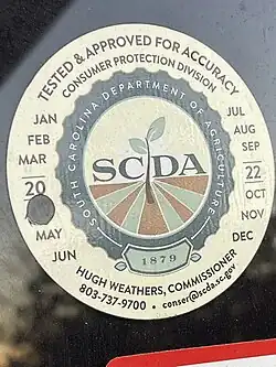 The SCDA is also responsible for regulating the sale of gasoline in South Carolina. The department is tasked with ensuring that the state's 64,000+ fuel pumps for motor vehicles in addition to airline fuel pumps are functioning correctly, are dispensing safe and balanced gasoline, and do not contain fraud measures, such as credit card skimmers.[6]