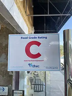 A restaurant in Columbia, South Carolina was given a "C" rating by DHEC, stating the restaurant needed "significant improvement."