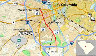 South Carolina Highway 35 (SC 35) is a 5.630-mile-long (9.061 km) state highway in the U.S. state of South Carolina. The highway connects the southern part of Cayce and West Columbia.