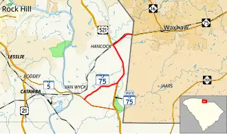 5. ^ "Overview map of SC 75 Truck (Van Wyck)" (Map). Google Maps. Retrieved December 24, 2020.