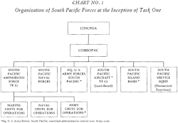 "The establishment of the Pacific Ocean Area as an area of United States strategical responsibility under the command of the Commander-in-Chief, U.S. Pacific Fleet, became effective on May 8, 1942. The Commander-in-Chief, U.S. Pacific Fleet, has been designated the "Commander-in-Chief, Pacific Ocean Area". Under the Commander-in-Chief, Pacific Ocean Area, a U.S. Naval officer has been designated as "Commander, South Pacific Area". The South Pacific Force under COMSOPAC include the following: