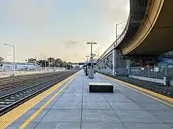 South San Francisco station is a Caltrain station in South San Francisco, California. The station is on the east side of the Bayshore Freeway (U.S. 101), east and south of the curved Grand Avenue overpass, and north of where the freeway crosses over the tracks. Downtown South San Francisco is to the west, across the freeway. It previously underwent a substantial modernization and expansion project, completed in January 2022.[3][4]