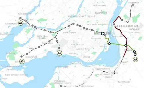 - ^ Colpron, Suzanne (14 February 2022). "Legault promet un 'très beau' prolongement du REM sur la Rive-Sud". La Presse (in French). Retrieved 5 December 2022.