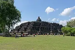 Most Southeast Asian people were originally animist, engaged in ancestors, nature, and spirits worship. These belief systems were later supplanted by Hinduism and Buddhism after the region, especially coastal areas, came under contact with Indian subcontinent during the first century.[70] Indian Brahmins and traders brought Hinduism to the region and made contacts with local courts.[71] Local rulers converted to Hinduism or Buddhism and adopted Indian religious traditions to reinforce their legitimacy, elevate ritual status above their fellow chief counterparts and facilitate trade with South Asian states. They periodically invited Indian Brahmins into their realms and began a gradual process of Indianisation in the region.[72][73][74] Shaivism was the dominant religious tradition of many southern Indian Hindu kingdoms during the first century. It then spread into Southeast Asia via the Bay of Bengal, Indochina, then Malay Archipelago, leading to thousands of Shiva temples on the islands of Indonesia as well as Cambodia and Vietnam, co-evolving with Buddhism in the region.[75][76] Theravada Buddhism entered the region during the third century, via maritime trade routes between the region and Sri Lanka.[77] Buddhism later established a strong presence in Funan region in the fifth century. In present-day mainland Southeast Asia, Theravada is still the dominant branch of Buddhism, practised by the Thai, Burmese, and Cambodian Buddhists. This branch was fused with the Hindu-influenced Khmer culture. Mahayana Buddhism established presence in Maritime Southeast Asia, brought by Chinese monks during their transit in the region en route to Nalanda.[72] It is still the dominant branch of Buddhism practised by Indonesian and Malaysian Buddhists.