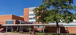 One of the more recognizable buildings on campus is Pulliam Hall, the home of the School of Education and the location of SIU's iconic clock tower. Pulliam was once known as Carbondale University High School, a functioning high school which served to train teachers.[45][46] The College of Business occupies nearby Rehn Hall. The Neckers Building, Engineering Building, and Applied Sciences and Arts Building contain most of the university's physical and chemical laboratories as well as lecture halls. The Neckers Building hosts several large telescopes, facilitating regular viewings of astronomical events.[47] The College of Liberal Arts primarily occupies Faner Hall, whose design and size have made it a controversial symbol of the campus. Allegations that Faner was built to be riot-proof are likely apocryphal; however it is true that Faner is almost thirty feet longer than the Titanic.[48] Faner is also the home of the University Museum which holds over 70,000 unique artifacts ranging from local history to original renaissance tapestries.[49] Students of the agricultural sciences will spend their time in the Agricultural Building, which boasts an award-winning flower display and living wall. Students in the media arts occupy the Communications Building, which hosts the annual McLeod Summer Playhouse. SIU's Law School is situated in the Lesar Law Building at the extreme west end of the campus.