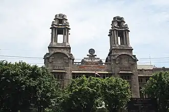 Built in 1921 as the new Madras and Southern Mahratta Railway Company (MSMR) headquarters (successor of Madras Railway Company), replacing the general office of MSMR at Royapuram Railway Station, the building now functions as the headquarters of the Southern Railways. The building was built at a cost of 3 million by H. H. Wadia and Bros, a leading Porbandar-based contractor.[1][2] Built for the first time in India in reinforced concrete in classical and Dravidian styles, the building was designed by N. Grayson, a 'company architect', working for the Madras & Southern Mahratta Railway.[3] It took nine years and over 3 million to complete the building and was inaugurated on 11 December 1922.