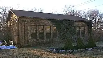 The Southwood Two-Teacher Schoolhouse is a historic school building located on Barker Hill Road just south of East Seneca Turnpike, in the Southwood neighborhood of the town of Onondaga, New York. Further east along the turnpike is the hamlet of Jamesville, New York. The two-teacher school was built in 1937–1938, and is a one-story, yellow brick Art Deco style building, but the ivy hides any architectural details that would show that. The rectangular building has a full concrete block basement and is topped by a flat roof. It remained in use as a school until 1966.[2]: 5, 8