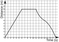 In the study of 1-dimensional kinematics, position vs. time graphs (called x-t graphs for short) provide a useful means to describe motion. Kinematic features besides the object's position are visible by the slope and shape of the lines.[1] In Fig 1-1, the plotted object moves away from the origin at a positive constant velocity (1.66 m/s) for 6 seconds, halts for 5 seconds, then returns to the origin over a period of 7 seconds at a non-constant speed (but negative velocity).