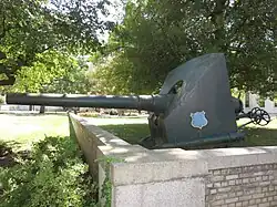 A 140 mm (5.5 in) gun from Vizcaya on display at the United States Naval Academy in Annapolis, Maryland, on 21 August 2016.