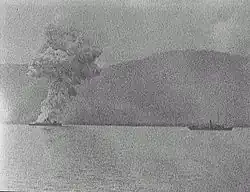 Vizcaya explodes during the Battle of Santiago de Cuba.