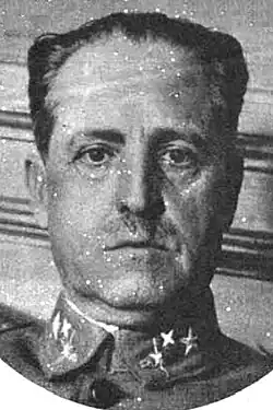 The key man in republican structures responsible for security issues was José Alonso Mallol, a 42-year-old lawyer and former member of PRRS who in the early 1930s briefly served as civil governor.[81] Salvador nominated him head of Dirección General de Seguridad,[82] the public order branch of the Interior, and later Moles confirmed him on this position. Historiographic opinions on Mallol differ; to some he "had worked tirelessly to combat Falangist terrorism and to monitor the activities of hostile officers",[83] to some he also lacked competence in security matters and was "no demasiado eficiente",[84] especially that he failed to find that some of his subordinates, like a high DGS functionary Santiago Martín Báguenas, were members of the conspiracy.[85] Guardia Civil, the key policing formation of the country, was led by brigade general Sebastián Pozas Perea, while Guardia de Asalto, formatted as sort of republican guard, was headed by teniente coronel Pedro Sanchez Plaza; both were fervent republicans. The Minister of War was initially division general Carlos Masquelet, of moderate left-republican sympathies; Casares had little faith in him and in May he took over the ministry himself. Throughout all the period between February elections and the July coup the army chief of staff was division general José Sánchez-Ocaña, a cautious military who did not demonstrate any political preferences.
