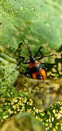 - ^ Yasuda, Tetsuya (1997-03-01). "Chemical cues from Spodoptera litura larvae elicit prey-locating behavior by the predatory stink bug, Eocanthecona furcellata". Entomologia Experimentalis et Applicata. 82 (3): 349–354. Bibcode:1997EEApp..82..349Y. doi:10.1046/j.1570-7458.1997.00149.x. ISSN 1570-7458. S2CID 84406457.