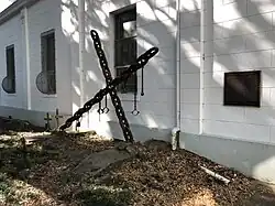 The Tomb of the Unknown Slave is located in a garden plot on the property of St. Augustine Church and is a monument to the many nameless or forgotten slaves that died before emancipation. The monument consists of large chains in the shape of a cross with small chains at the base. The parishioners that designed the monument selected this location since it is the site of the Tremé Plantation House where many slaves lived in centuries passed.[2]