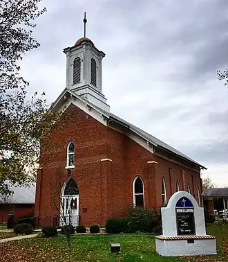 St. James Chapel, also known as the St. James United Methodist Church, is a historic Methodist chapel located at St. James, Phelps County, Missouri. It was built in 1868, and is a one-story red brick building with Gothic Revival and Romanesque Revival style design elements. It measures 40 feet by 60 feet, and has a gable roof. It features a bell tower topped by a dome.[2]: 2