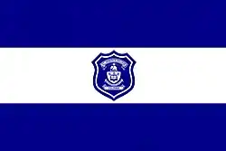 The official college flag consists of two navy blue stripes and a white stripe in the middle which are all equal in size. In some occasions, a flag with the college Crest placed in the middle is also used.