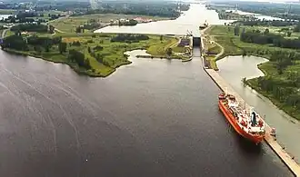 The St. Lawrence Seaway (along with ports in Quebec) is the main route for Ontario grain exports to overseas markets.[34] Its fees are publicly known, and were limited in 2013 to an increase of 3%.[35] A trained pilot is required for any foreign trade vessel.[36] A set of rules and regulations are available to help transit.[37]