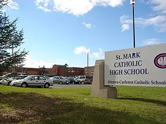 St. Mark Catholic High School is a public secondary school located in Manotick, a neighbourhood in the city of Ottawa, Canada. Its enrollment is currently around 1100 after losing about 600 students to St. Francis Xavier Catholic High School in 2009 & 2010, after the completion of its construction in 2009. St. Francis Xavier is located just down Limebank Road, less than 10 minutes from St. Mark.