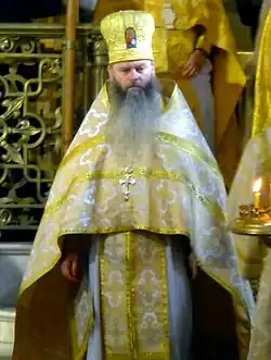 The monks returned to Jabłeczna in 1918[101] or 1919.[102] The first to arrive at the monastery was Hieromonk Mitrofan (Stelmaszuk), and on 20 September 1919, the superior, Archimandrite Sergius Korolov, returned.[99] The monastery was devastated and in need of reconstruction.[101] In the early years of the monastery's existence in independent Poland, its activities were limited by local authorities. In September 1919, the Church of St. Onuphrius was closed, and the parish church in Jabłeczna, as Uniate property, was handed over to the Catholic Church. Additionally, the Catholic diocese of Siedlce and the parish priest of the Catholic parish in Sławatycze took actions for the complete liquidation of the monastery. Inspired by them, the local population gathered at rallies demanding its closure. The parish in Sławatycze, without a proper court ruling, also took over most of the monastery's lands.[102][99] In 1922, Polish authorities expelled the monastery's superior, Bishop Sergius (Korolow) of Bielsko, who as a monk had been involved in strengthening Orthodoxy in the Chełm region and had opposed the autocephaly of the Orthodox Church in Poland after 1918.[103] In 1920, after intervention by representatives of the Orthodox Church in the Ministry of Religious Affairs and Public Education, the monks regained the Church of St. Onuphrius. During its closure, part of its equipment was looted and transferred to the church in Jabłeczna.[104] The monks also regained the church in Dratów.[104]