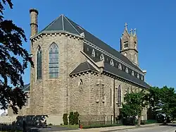St. Patrick's Church is a historic church building at 1598 South Main Street in Fall River, Massachusetts. It was built in 1881 from local Fall River granite and added to the National Register of Historic Places in 1983.