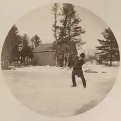 Students on the ice of Lower School Pond, 1890 -