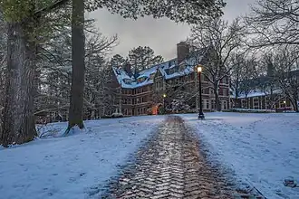 Drury also sought to democratize the student body and curtail snobbery among the richer students.[32] Although St. Paul's was heavily oversubscribed—in 1920 it received over 1,600 applications for just over 100 openings[33]—Drury set aside 10 slots a year for the winners of a competitive examination,[12] dryly explaining that "we try to admit every son of an alumnus," but also "wish to admit every boy with high marks."[8]: 247 A capable fundraiser, Drury raised the school's financial endowment from $1.1 million in 1920 to $3.6 million in 1930, and conducted a $1.6 million fundraising campaign that primarily went towards student financial aid.[8]: 199, 224 From 1920 to 1938, the share of SPS students on scholarship nearly tripled, from roughly 6% to 17%.[12][8]: 264 Starting in 1922, Drury and his successors froze tuition at $1,400 for 22 consecutive years.[8]: 300