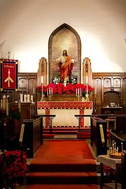Worship opportunities at St. Thomas Episcopal Church include a Sunday morning Holy Eucharist Service using Rite I or Rite II, a Holy Eucharist and Healing Service on Wednesday mornings, and a Taizé service on Wednesday nights.[6] Services include various liturgical ministers from the laity, including lectors, intercessors, chalice bearers, the altar guild, the flower guild, and ushers.[7]
