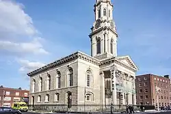 St. George's Church is a former parish church in Dublin, Ireland. Designed by Francis Johnston, it is considered to be one of his finest works. The structure is located at Hardwicke Place, just north of the city centre, though when it was opened this was considered to be in Drumcondra.[3] The elegant spire, 200 feet (61.0 m) high, became a landmark of the north inner city.[4] Along with St Andrew's Church, Chennai, it is considered one of the finest stylistic "daughter" churches to London's St Martin-in-the-Fields.
