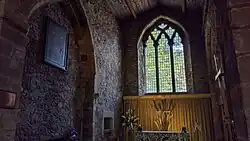 The chancel extending beyond the east arch of the crossing tower is 13th century. Until the reconfiguration of the church to contemporary taste in recent times this area was the principle ritual heart of the building. It is probably the site of a 10th-century apsidal chancel constructed at the time of the tower. The current structure was built in the 12th century in an Early English style.[3] It was here that the Eucharist was celebrated through the Middle Ages on a lost high altar. Today it remains a visual focus but is primarily used by musicians during Sunday services.[5]