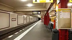 Stadtmitte (German pronunciation: [ˈʃtatˌmɪtə] ⓘ, City Centre) is a Berlin U-Bahn station on lines U2 and U6, located in the Mitte district.