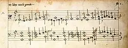 Excerpt from a keyboard work by William Byrd written on a six-line staff, 1591