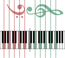 Musical keyboard and treble and bass clef
